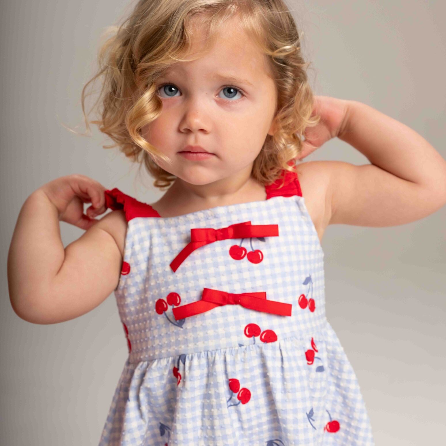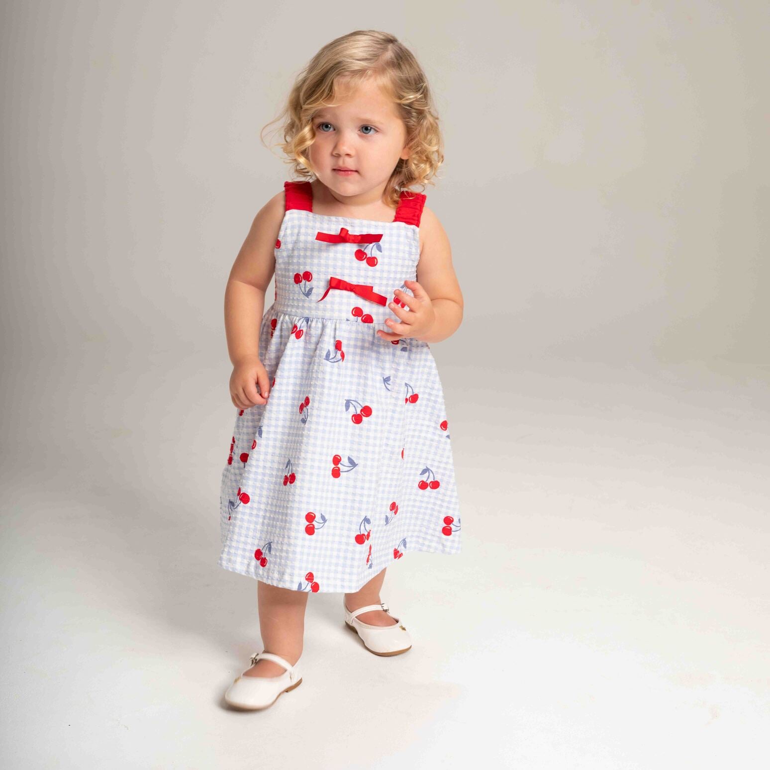 O Vestido Cereja Xadrez é pura doçura para acompanhar cada passo das pequenas.